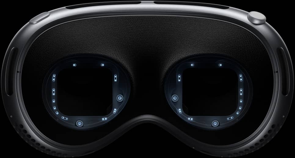 EyeSight. An outward display reveals your eyes while wearing Vision Pro, letting others know when you are using apps or fully immersed.